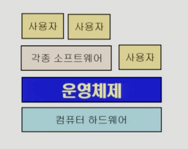 - 계층의 위치를 잘 보자. 운영체제는 중간에 있다.
