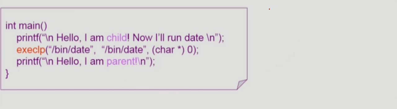 - 예시로 위에서 두번째 그림에 exec이 실행되면, Hello, I am parent가 출력되지 못한다.