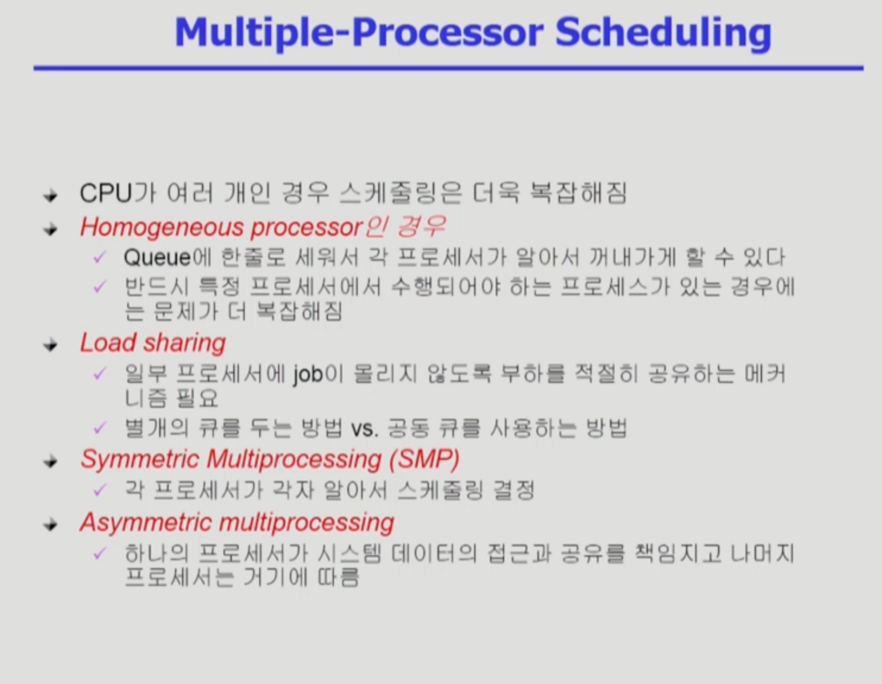 - 반드시 특정 프로세서에서 수행되어야 하는 프로세스가 있는 경우 복잡해진다.