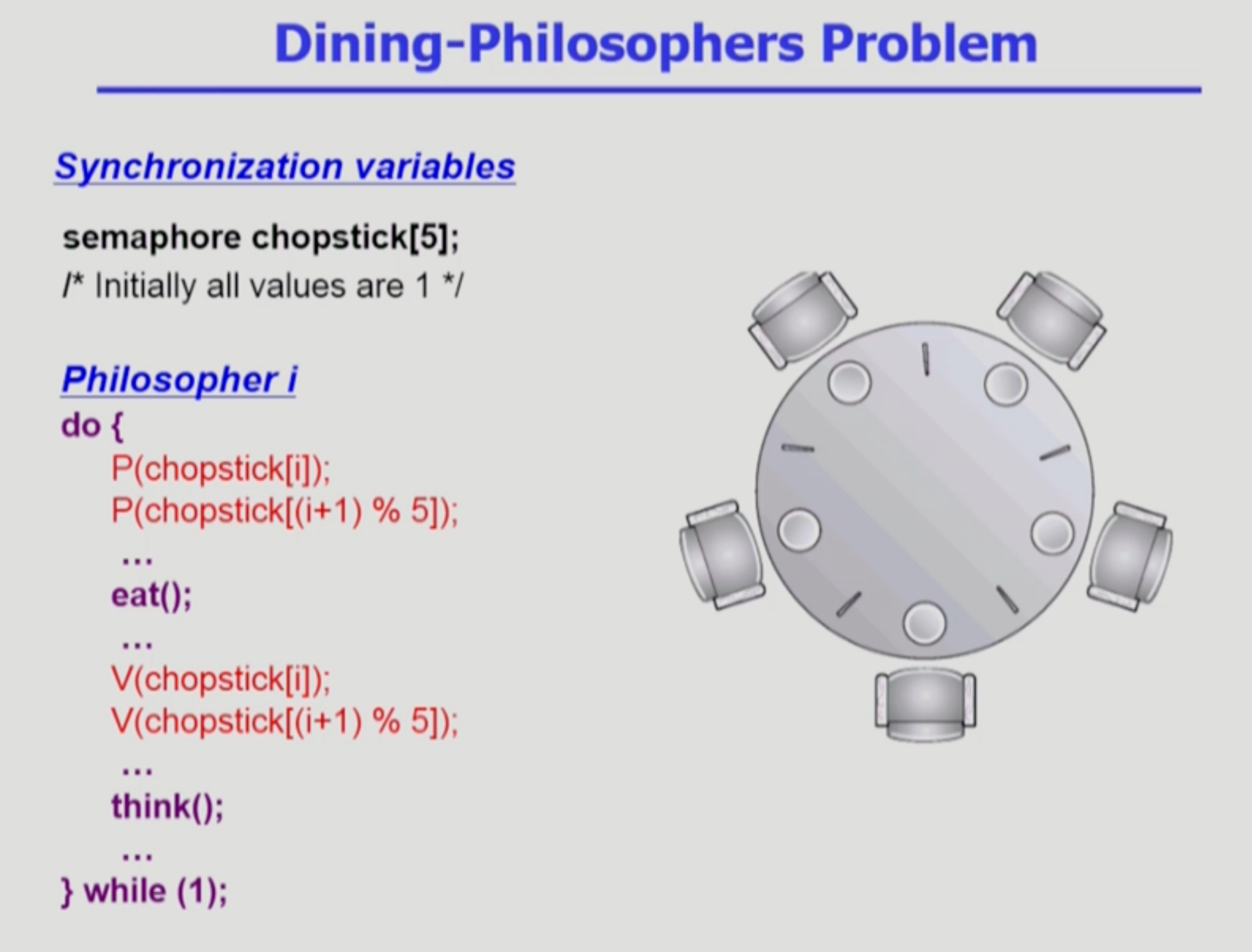 - 모두 다 왼쪽 젓가락을 잡은 경우 -> 데드락