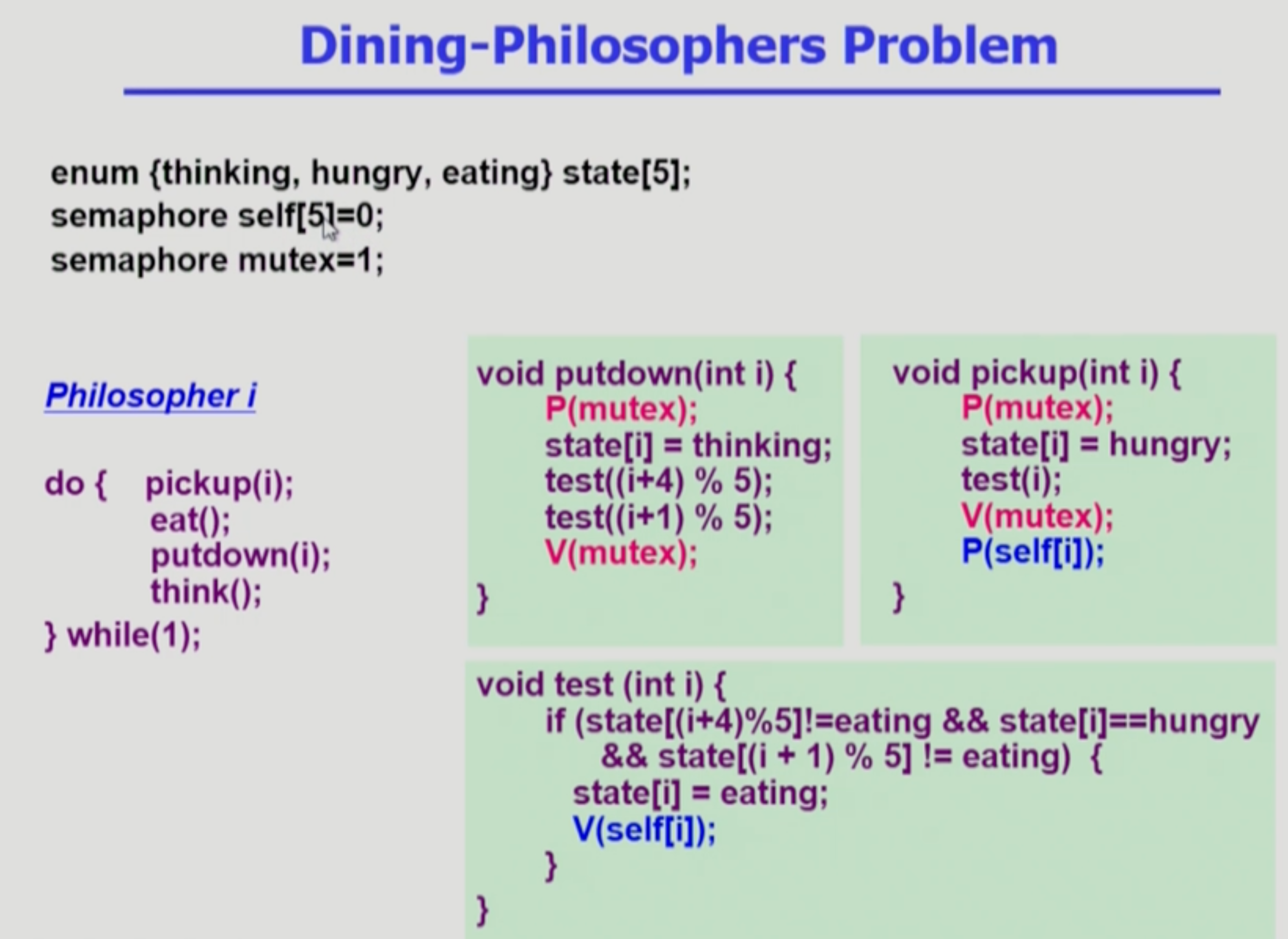 - test의 조건을 만족하지 못하면, 젓가락을 잡을 권한을 얻지 못한다. 그때는 P(self[i]) 연산을 해도 젓가락을 얻지 못한다.
