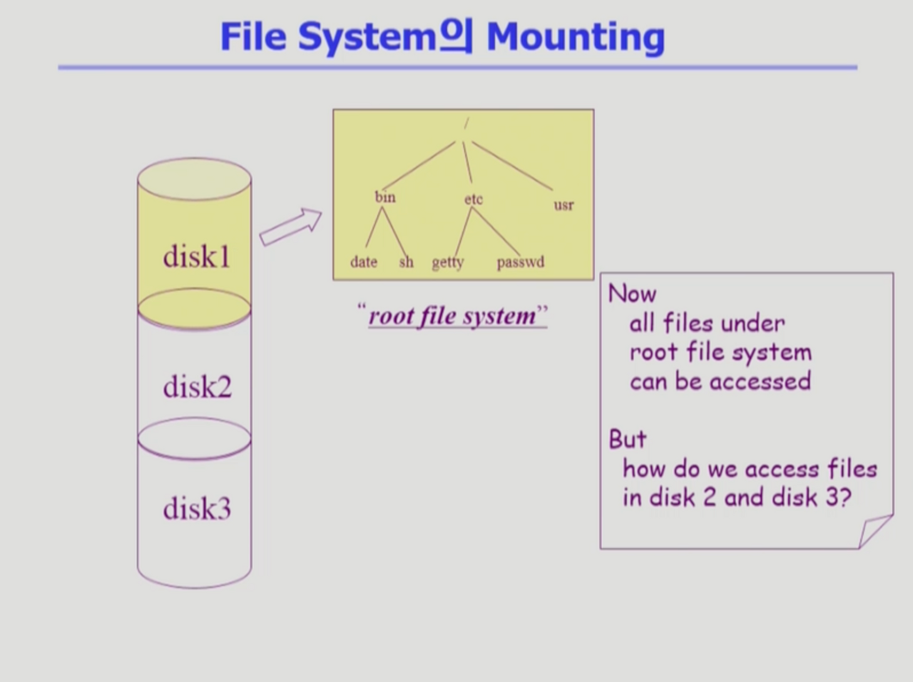- 운영체제는 다양한 저장장치를 file이라는 동일한 논리적 단위로 볼 수 있게 해줌 ex) 하드디스크 1번, 2번..등을 파일로 관리(이러한 것들을 device spcial file이라고 함)
