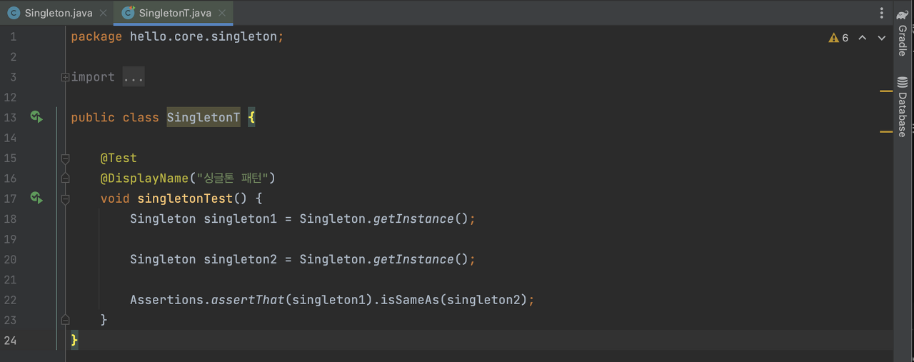 해당 코드를 이용해 테스트를 작성했다. 따로 생성했지만, isSameAs()메서드로 동일성(Identity)를 체크하면 테스트가 성공한다.