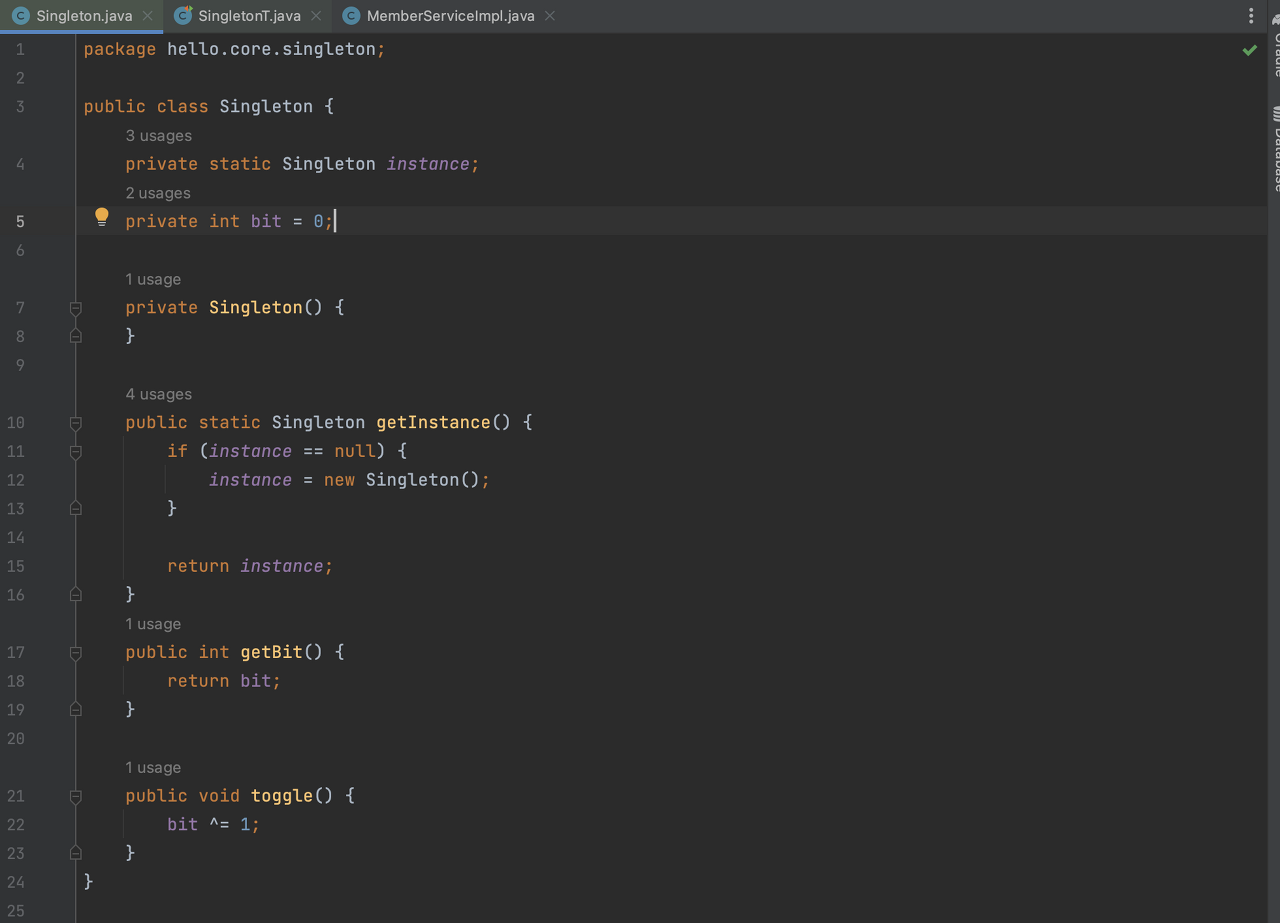새로 생성한 singleton2의 상태값이 같음을 통해 인스턴스를 공유하고 있음을 알 수 있다.