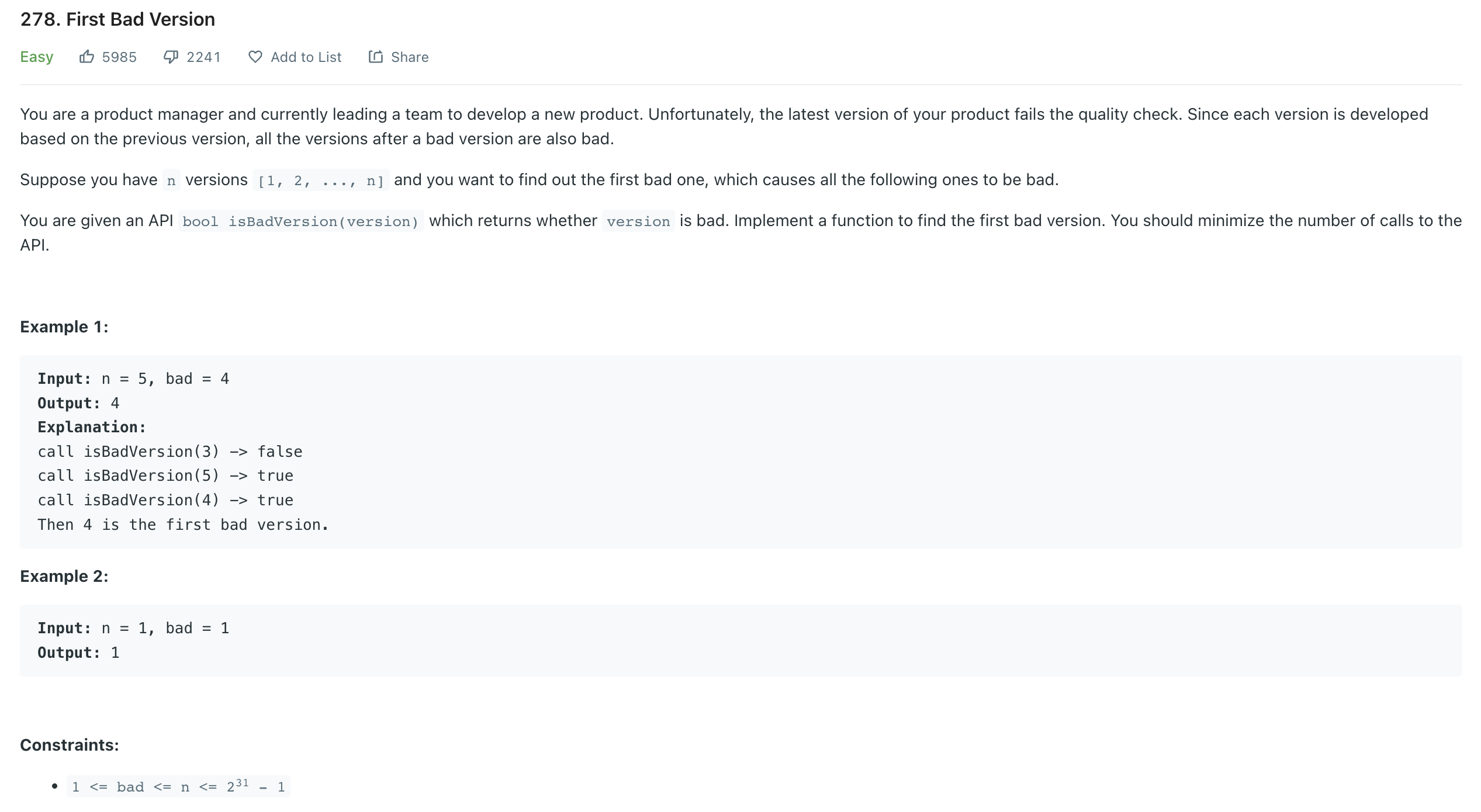 First Bad Version - LeetCode