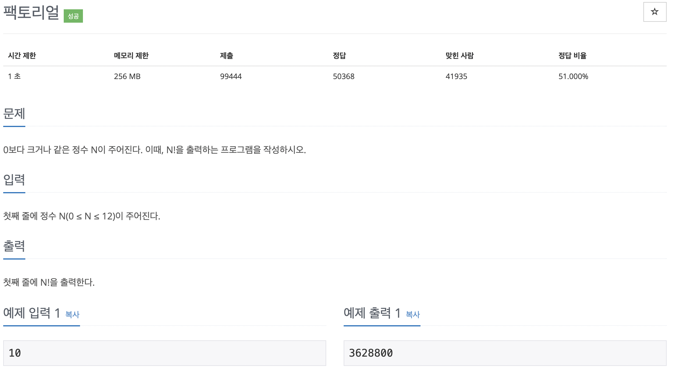 0보다 크거나 같은 정수 N이 주어진다. 이때, N!을 출력하는 프로그램을 작성하시오.