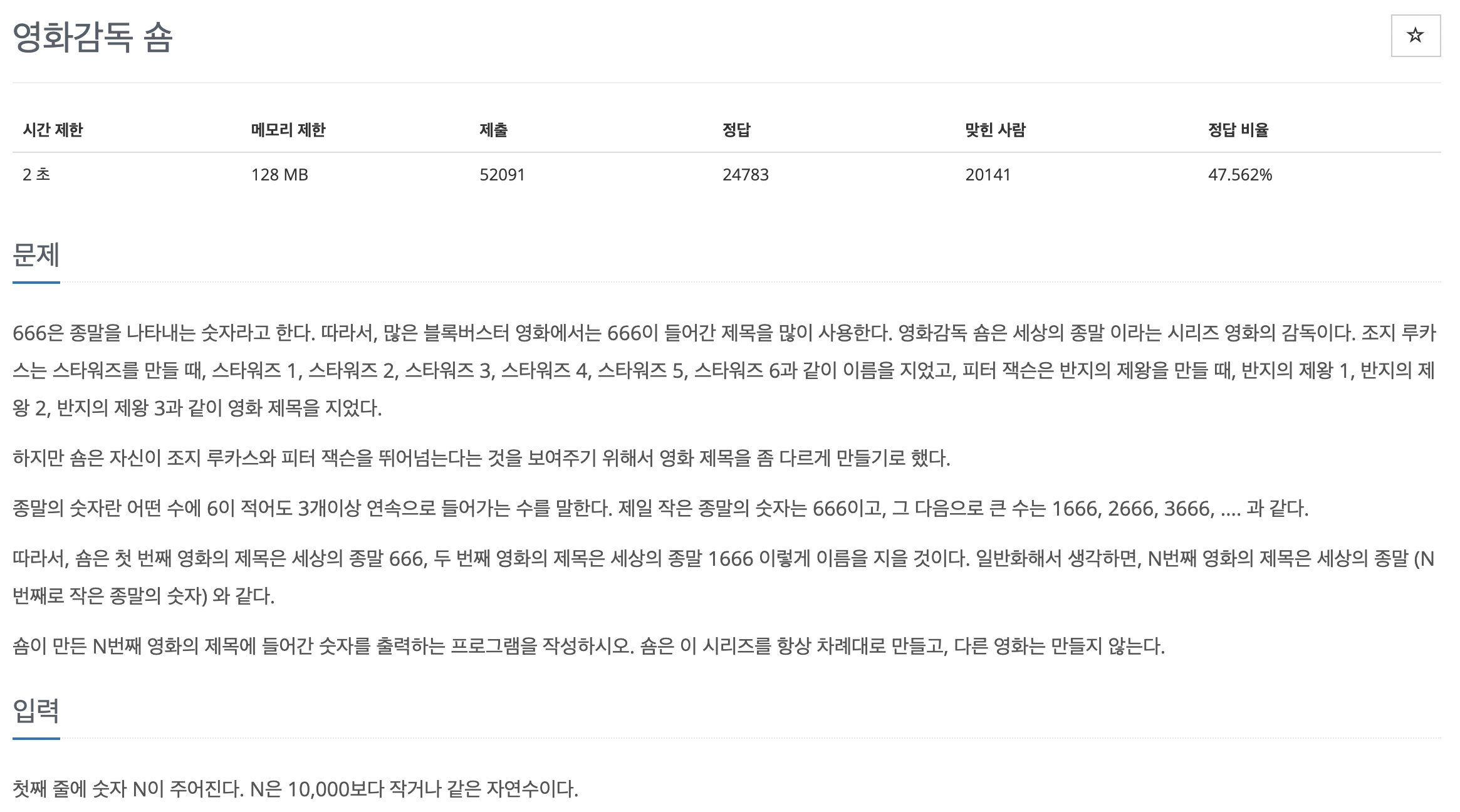 3. 탐색 범위를 줄이고 contain을 사용한 방법 - 알고리즘을 정리해서 잘 올려주시는 st님 블로그에서는 666의 위치를 기준으로 탐색범위를 크게 줄여준 방법을 사용했다.