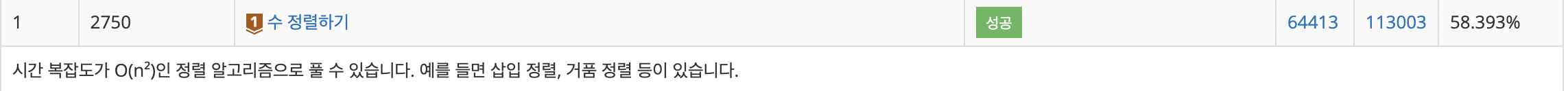 설명대로 시간복잡도 허들이 낮은 편인 정렬을 사용해서 풀어봤다. 버블정렬, 삽입정렬, 선택정렬 세 가지로 풀어보았다. Arrays.sort를 사용해도 통과된다.
