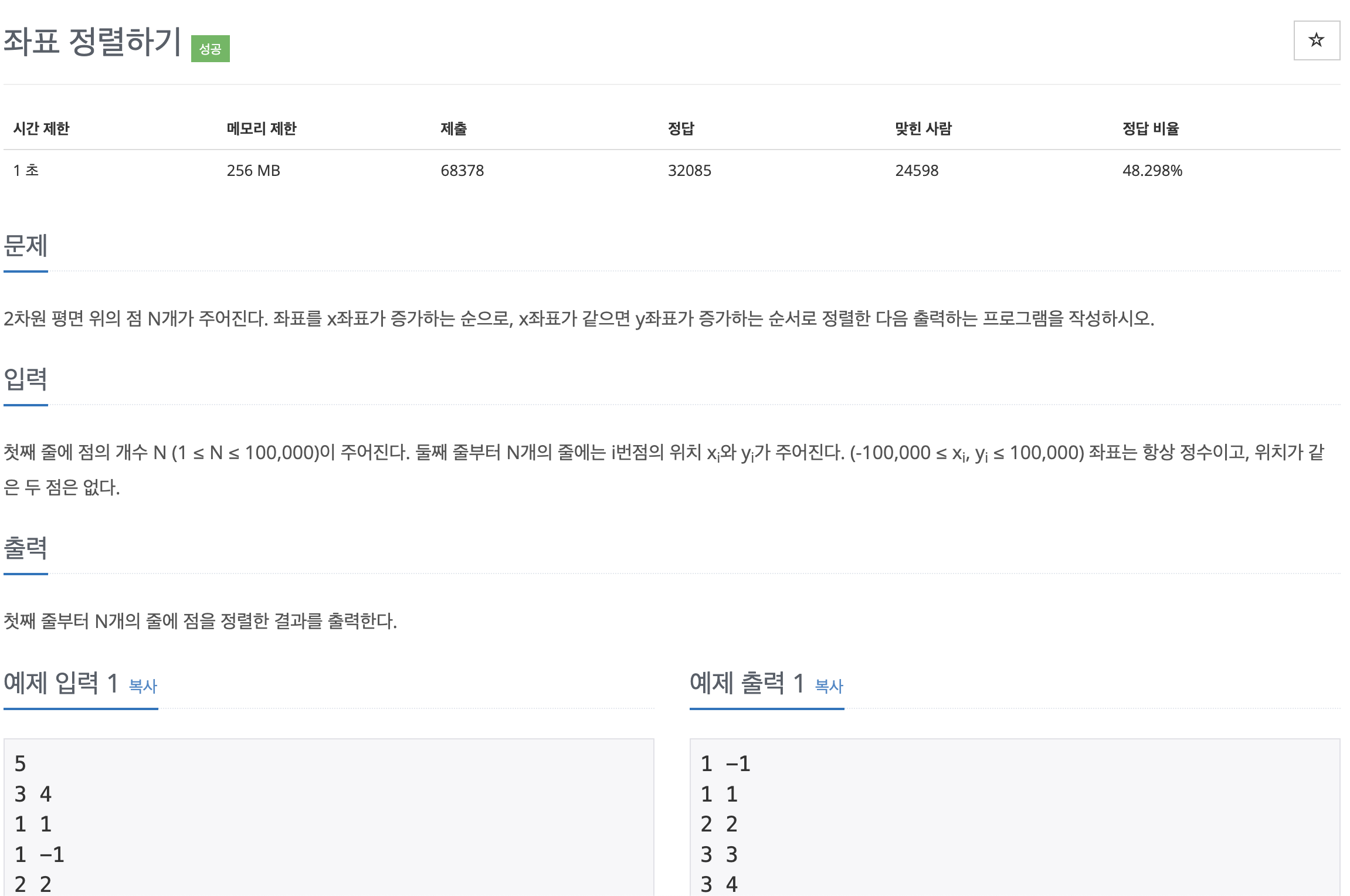 https://www.acmicpc.net/problem/11650