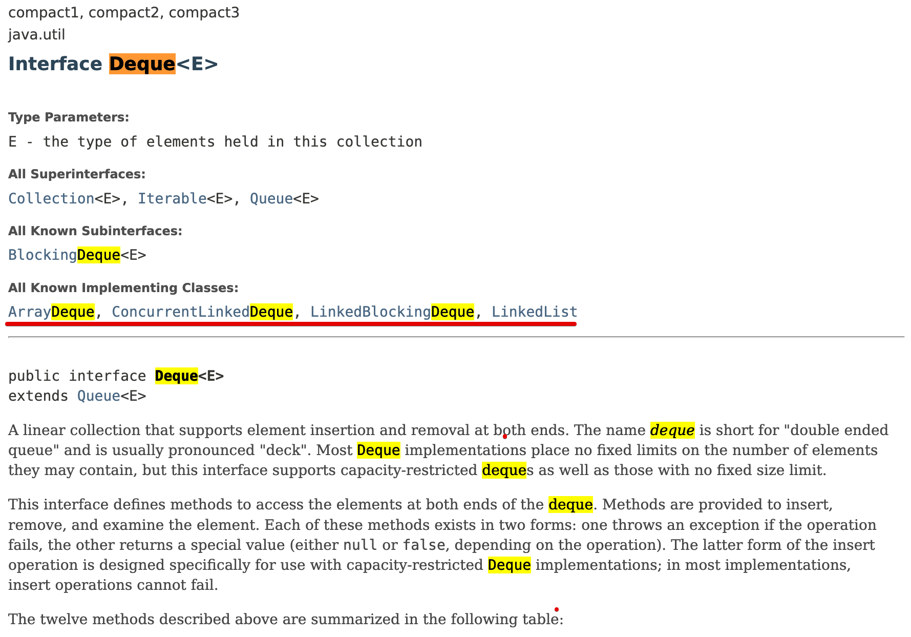 구현체에 ArrayDeque,ConcurrentLinkedDeque, LinkedBlockingDeque, LinkedList 등이 있다고 한다.
