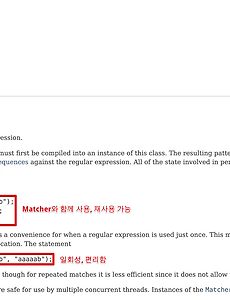 Java3 자바 객체 타입 변수에 final의 이해 원시타입에 final을 붙여서 초기화하면 값을 변경할 수 없다. 다음과 같이 오류가 뜨는 것을 확인할 수 있다. 이런 사례가 눈에 익어서 그런지, 이전부터 보통 자바에서 변수에 final을 붙이면 변경불가로 알고 있었다. 그런데 일급컬렉션을 공부하면서 안정성을 위해 객체에 final로 지정해주는 경우를 보았고, 객체의 내부는 계속 변경되었다. 변경 불가인데 왜 변경이 되는지 의문이 들었다. 알고보니 원시타입과 객체에 final이 붙었을 경우는 다르게 생각해야 했다. final을 객체타입에 붙였을 경우, 객체 자체가 변경 불가능한 것은 아니다. 밑줄친 부분을 보면, "final 변수가 객체를 참조하는 경우, 객체의 상태는 변경될 수 있지만, 변수는 같은 객체를 참조한다." 라고 말하면서 배열에도 동일하게 .. 2022. 7. 2. Pattern, Matcher를 matches()를 이용한 간단한 정규표현식 대조 (Java 11) 시작 맨날 Pattern을 사용할때마다 까먹고 다시 찾아보는 것 같다. 넥스트 스텝 미션을 하면서 Pattern과 Matcher를 사용할 일이 생겼는데, 이참에 정리해봐야겠다. 우선 정규표현식과 대조하는 기능을 간단히 알아보고, 다음에 다른 메서드들도 정리할 생각이다. 1. Pattern이란? 자바 11 공식문서이다. Pattern에 대해 "정규표현식의 컴파일된 표현"이라고 한다. 간단히 말해서 정규표현식을 사용하고 싶은데, 문자열 그대로 사용할 수 없기때문에, Pattern의 compile메서드를 사용하여 Pattern객체로 만들어서 사용해야 한다. 재사용과 일회성이라고 적어놨는데, 밑에서 알아보자. 2. 간단한 사용법 1) Matcher의 matches() 활용 처음 캡쳐본에 빨간색 네모 부분의 코드.. 2022. 3. 27. 메서드 오버라이딩 리턴 타입이 다른 경우 (Java) 1. 오버로딩, 오버라이딩 프로그래밍 언어 기초 공부를 할 때, 수업이나 책에서 상속을 배우면서 보통 오버로딩과 오버라이딩을 같이 배운다. 보통 이런 식으로 배운다. 메서드 오버로딩 : 동일 이름의 메서드를 매개변수만 다르게 하여 여러 개 정의할 수 있는 기능 -> 사용 조건 : 이름 동일, 매개변수 개수 다름 or 타입 다름, 반환형 무관 메서드 오버라이딩 : 상속 관계에 있을 때, 하위 클래스에서 상위 클래스 메서드를 재정의 하는 것 -> 사용 조건 : 메서드 이름 동일, 매개변수 개수, 데이터 타입 동일, 반환형 동일 이 중 오늘 기록할 내용은 오버라이딩의 반환형에 대해서다. 2. 이전에 들었던 의문 혼자 공부를 할 때 오버라이딩은 반환형이 동일해야 한다는 내용을 책에서 봤었는데, 막상 수업에서는 .. 2021. 10. 4. 이전 1 다음